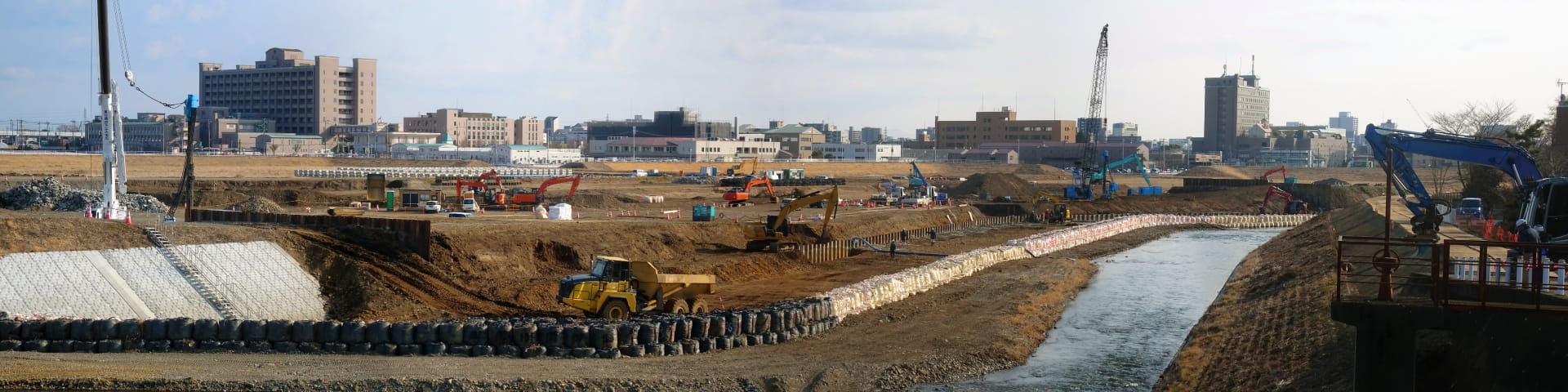 埋め立て・切土・盛土・地盤の改良など、土地の状況に応じて様々な工事をおこない、安全で活用しやすいあたらしい土地の価値を作り出す建築前に不可欠な作業・工事です。