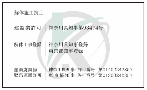 | 主な業務内容 | 解体工事業 |